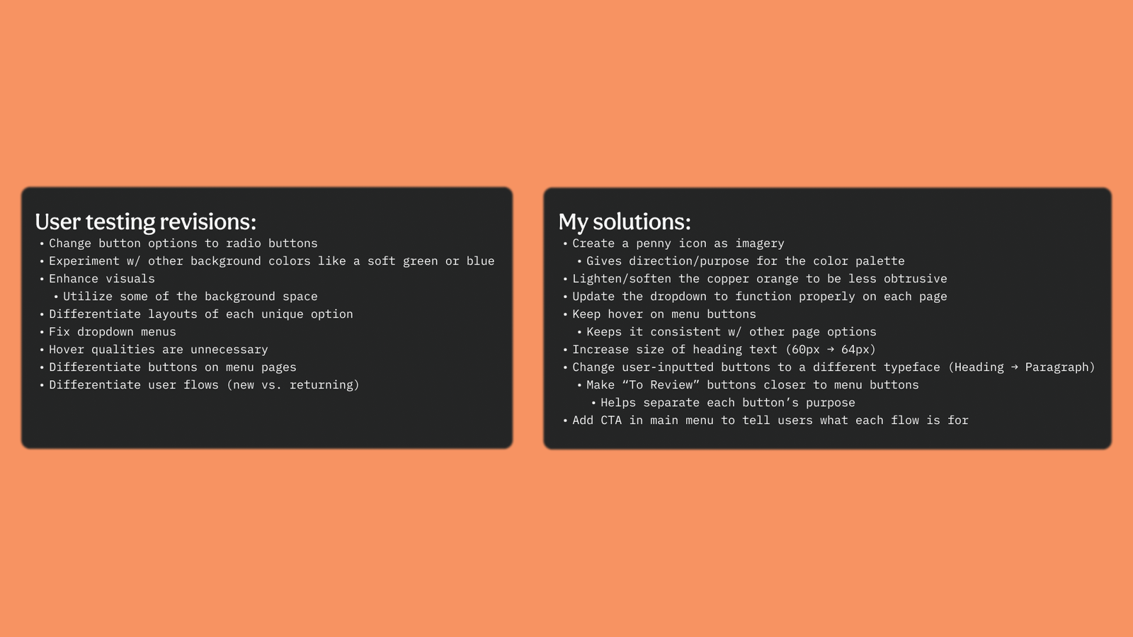 To start, I considered my personal experience with ATMs and my reluctance to use independent kiosks compared to those from official banks. I allowed this to guide the rest of my user research and underline what I hoped to solve with my vision for an ATM kiosk. Abraham Lincoln came to represent that vision because he is a historically reputable figure, and his placement on the penny reflects the brand’s equitable, building-block tone of voice. With this, I incorporated copper into the color palette and the kiosk’s overall aesthetic. This then provided the brand an overall aesthetic that stands apart from other banks and ATMs and alleviates the unease people often have when using them.